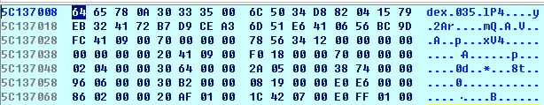 - 内存中寻找dex.035或者dex.036