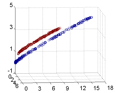 但是,通过跟高斯“核”的结合,支持向量机可以表达出非常复杂的分类界线,从而达成很好的的分类效果。“核”事实上就是一种特殊的函数,最典型的特征就是可以将低维的空间映射到高维的空间。