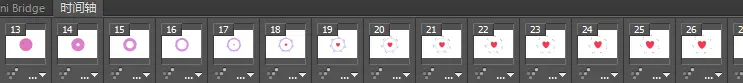 - 圆环减消失、心形放大、周围环绕十四圆点.