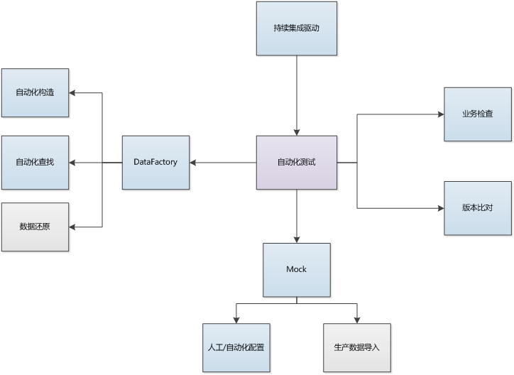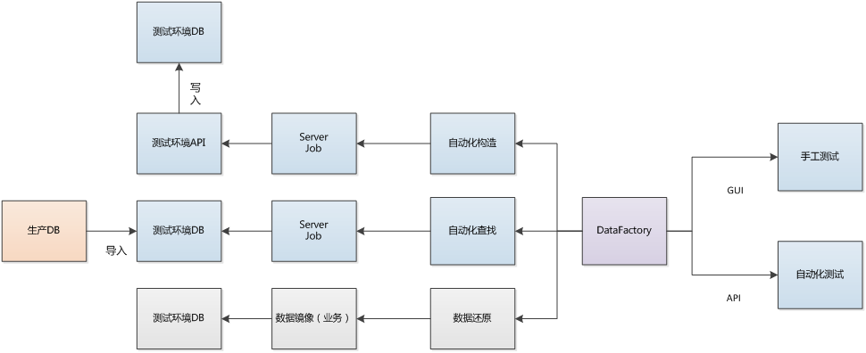 • 动态测试数据工厂:主要包括测试数据的自动化构造、数据库数据后台自动轮询、已使用数据还原