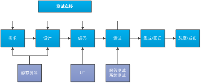 其中涉及到的工作大致可分为PRD静态测试、服务契约测试、代码静态扫描、单元测试、服务接口测试、开发自测、测试准入检查、入测质量数据统计等。