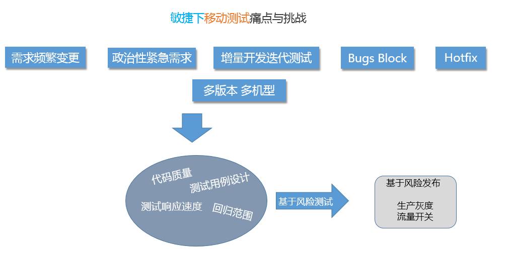 因此,在敏捷下移动端的测试,如何在研发全流程阶段去暴露风险和问题,进行全程的质量保证,而不是将风险全部积压在测试阶段,就显得更加重要。