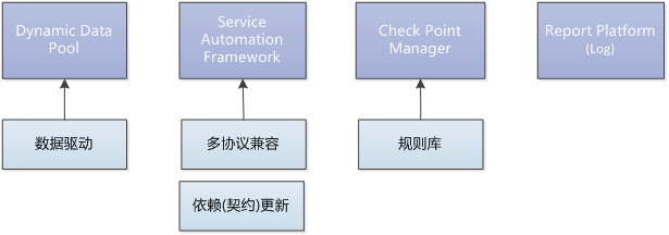 为了解决上文中提到的自动化过程中动态测试数据、系统依赖、环境稳定、业务校验、脚本执行效率等问题,我们在自动化周边建设配套设施,主要包括提供: