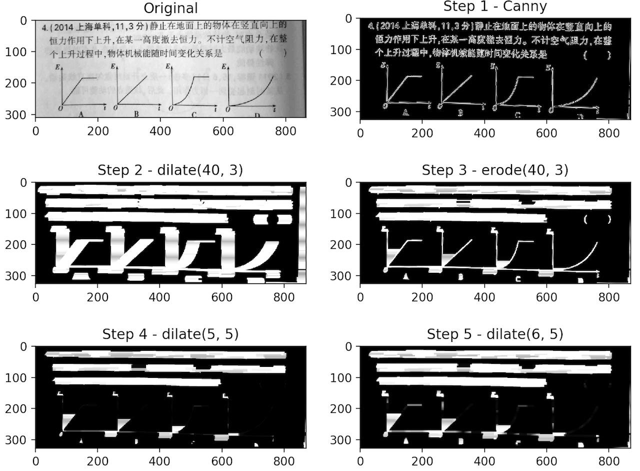 由于预处理过程中已经将样本的图像尺寸基本调整一致,所以可以比较容易的利用形态学的处理方法,分割出文本行。过程如下: