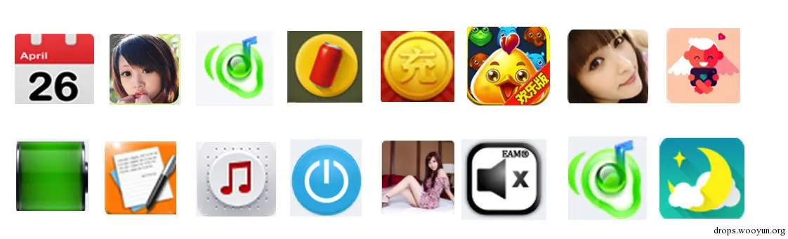 被感染应用以及恶意样本数量过千类,以下列出“万年历,清涩笑话,特实惠, 魅力女生动态桌面,开心乐消消-欢乐版,内涵壁纸,开心乐消消,全网充话费,极致腿模,好听音乐,HoloTorch,情趣内涵电台,Accurate Battery,Super Silent,心情天气”