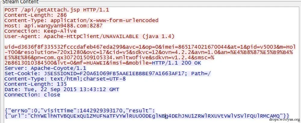 图post 手机信息到服务器(http://api.wangyan9488.com:8285/api/getShell.jsp),返回加密url