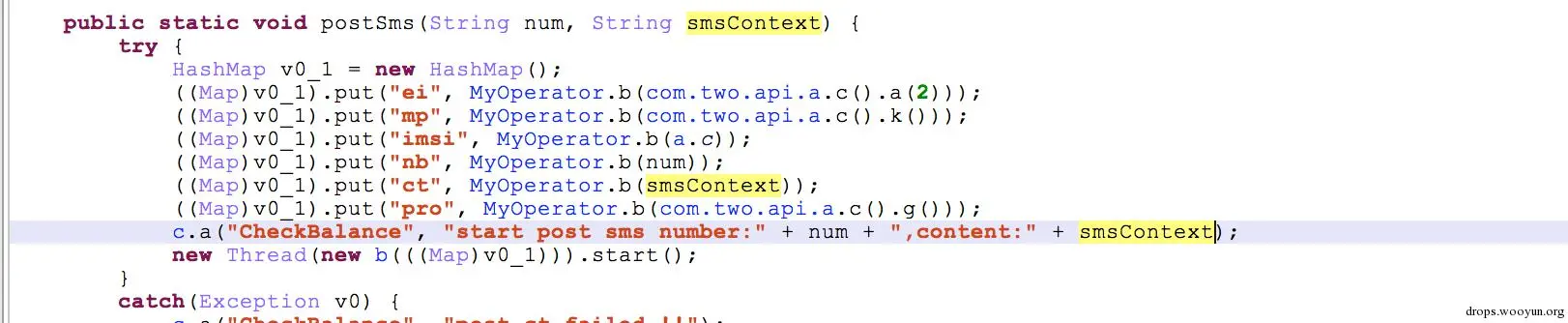 接下来过滤短信发送者,将短信内容,发送者手机号码,以及手机imsi等发post到指定服务器