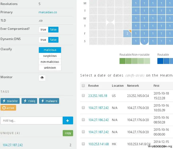 A、收集完信息分析发现,9128.cc和maicaidao.co域名指向的都是一个地址。