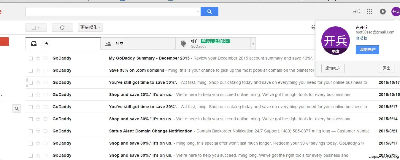 进去以后就看到了很多的godaddy邮件,这下不用说了,直接去重置。
