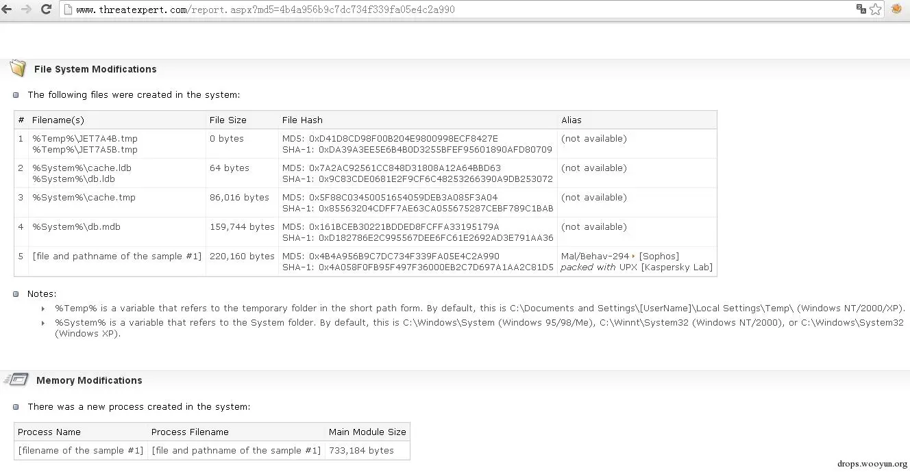 然后分析另外的一个域名的一些信息,又有一些新的发现,http://www.threatexpert.com/report.aspx?md5=4b4a956b9c7dc734f339fa05e4c2a990