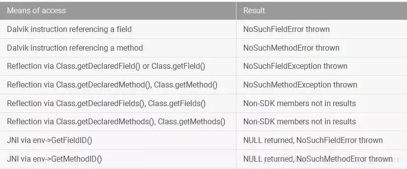 2.1:非SDK接口的三种分类:浅灰名单,深灰名单和黑名单 这里写图片描述