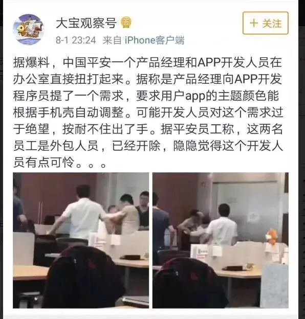 近两天,一则产品与程序员打架的消息不断在圈里流转议论。就是这个: