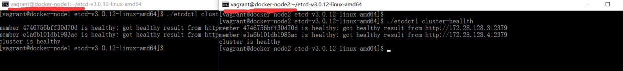 --initial-cluster docker-node1=http://172.28.128.3:2380,docker-node2=http://172.28.128.4:2380 \