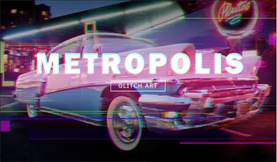 11.最后,添加一些信号故障的横线。这类线多为绿色,紫红色,红色,蓝色,大多为通道颜色。用矩形工具画出一些长短不一的线,可以改变图层的混合模式和不透明度,可以参考一些glitch效果的作品。