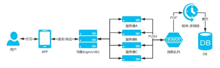 - 业务接口将客户端上报的数据PUSH到消息队列(MQ中间件),然后就响应结果给用户