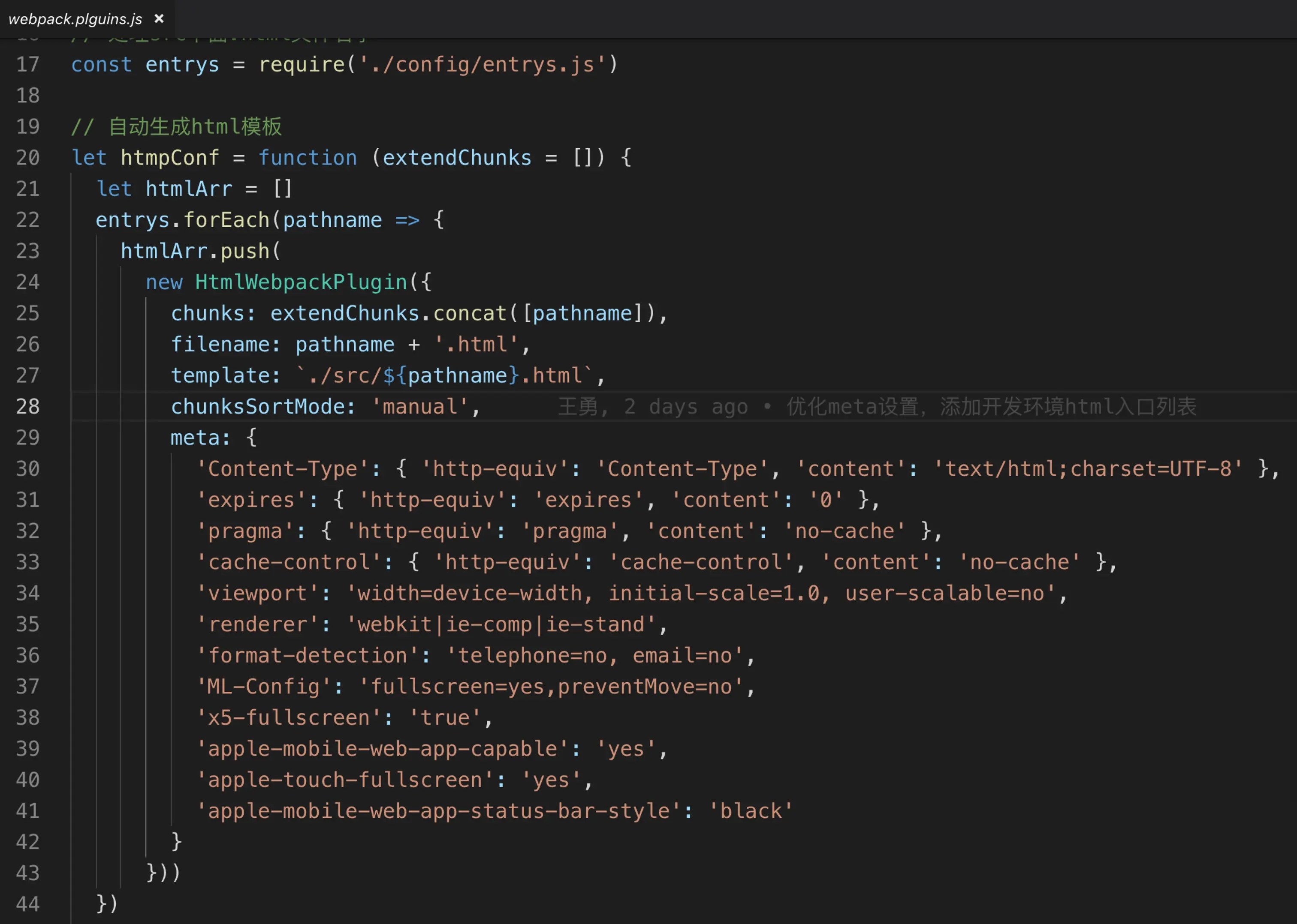 if (devMode) { config.entry.mock = path.resolve(__dirname, 'mock/index.js') config.entry.index = path.resolve(__dirname, 'config/indexEntry.js')}plugin相关配置