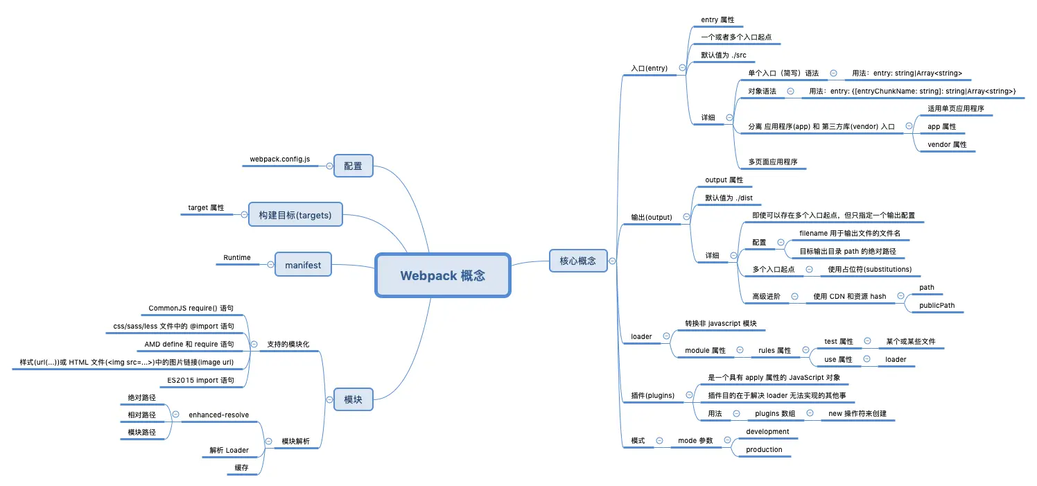 - 首先通览一遍概念。如果真的认真通览了概念,那对 webpack 基本可以说是已经掌握一半了。因为后面像配置这些内容,你会发现都是重复的。
