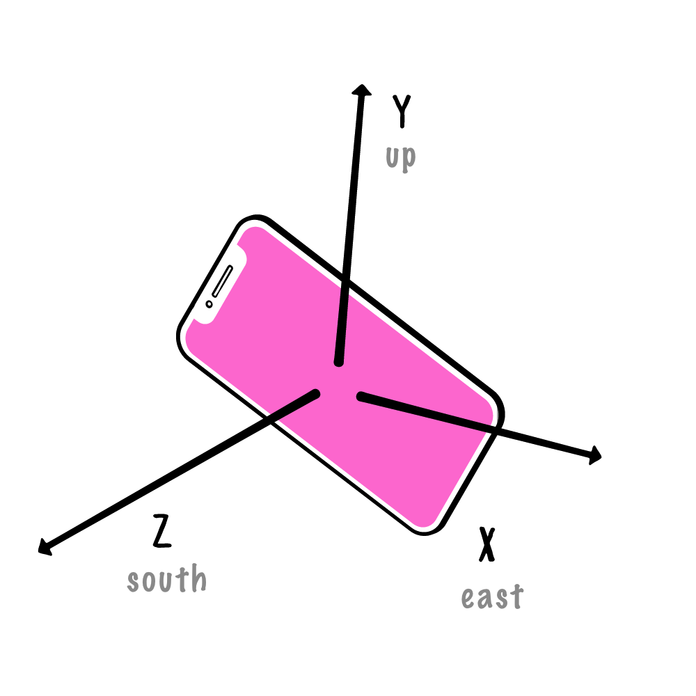 - gravityAndHeading:y轴与重力方向平行,而x轴指向东,z轴指向南.和现实世界保持一致.