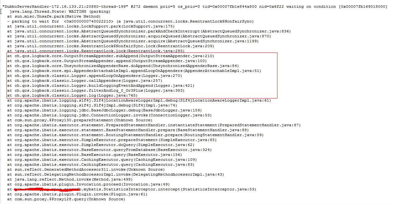 这个线程是因为logback为同步线程锁,线程等待日志写入硬盘,导致CPU利用率上不去,只要把logback改成异步就可以了。
