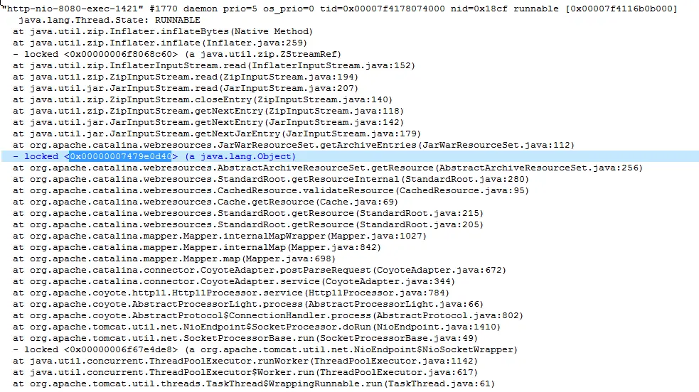 此应用CPU利用率上不去的原因是因为需要压缩的文件过大,压缩时间长,导致其他线程都在等待该线程释放锁,CPU同时间只能处理这一个线程,所以利用率低。