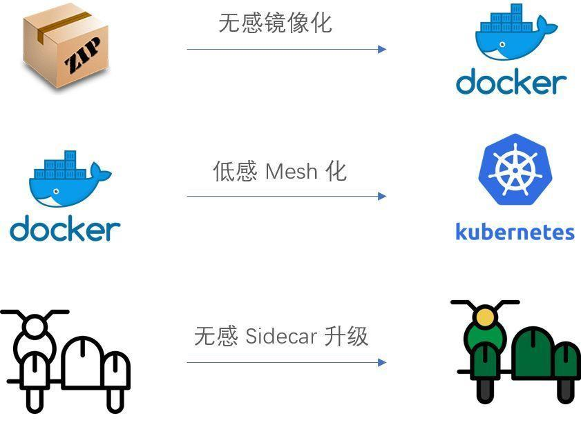 中间件能力下沉在架构上看是可行的,实际落地如何做到无打扰的在奔跑的火车上换轮子,低打扰是一个非常重要的考量点。借助于 Kubernetes 的优秀实践,将业务容器与 Sidecar 容器编排在同一个 Pod 中是比较合理的架构,Sidecar 与业务容器互不干扰,互相升级均可做到双方无感。