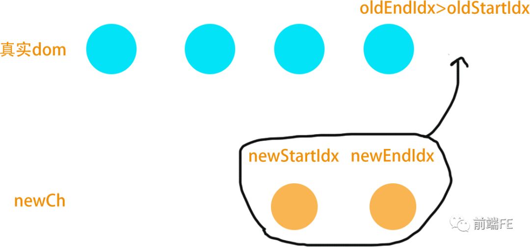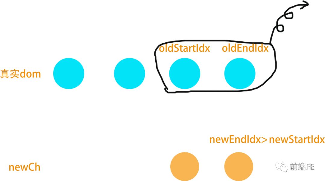 newCh中的节点oldCh里没有, 将新节点插入到oldStartVnode.el 的前边。