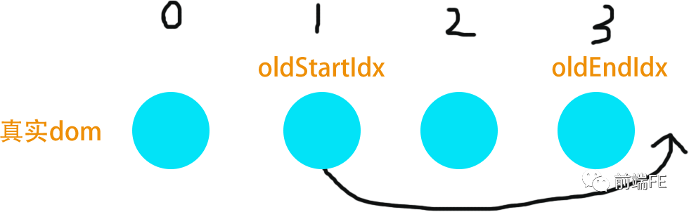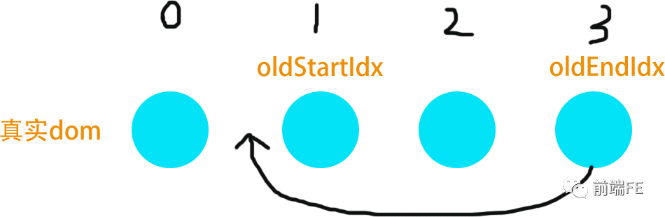 当oldStartVnode ,newEndVnode 值得比较,说明oldStartVnode.el 跑到oldEndVnode.el 的后边了。