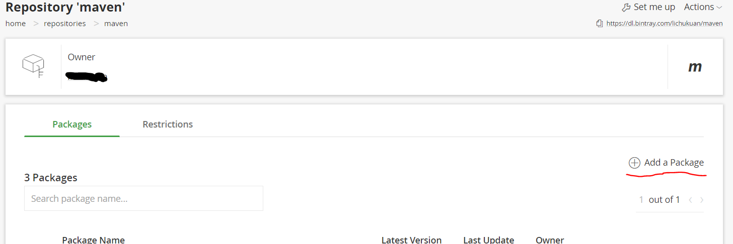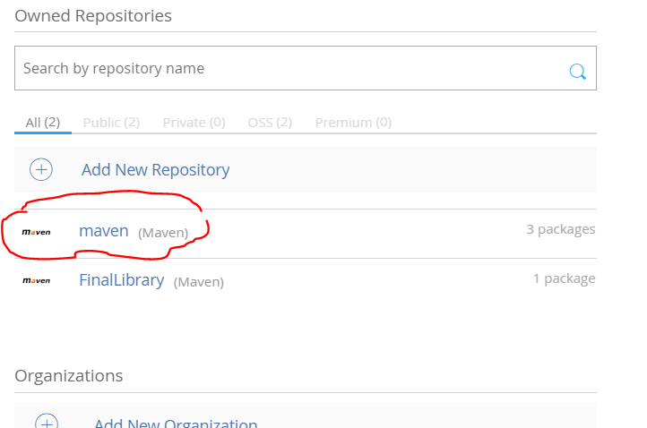 首先到官网中登陆或注册,找到默认的仓库Maven,进入默认仓库创建Package.过程如图: