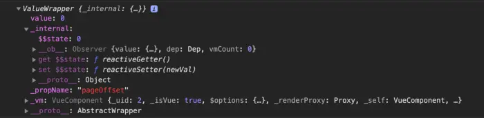 你可能注意到了,变量 pageOffset 变量包含一个响应式属性 .value。之所以使用包装对象(Value wrappers),是因为 JavaScript 中像数值、字符串这样的基本类型值不是通过引用传递的,而是通过值赋值的方式。而包装对象就提供了为任何类型值提供可修改和可响应的方案。