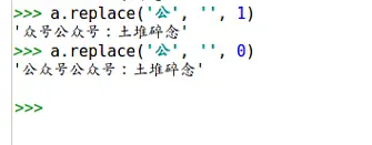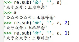 比如,字符串a='公众号公众号:土堆碎念',尝试将其中的公字符删除,将公字符替换成空字符。