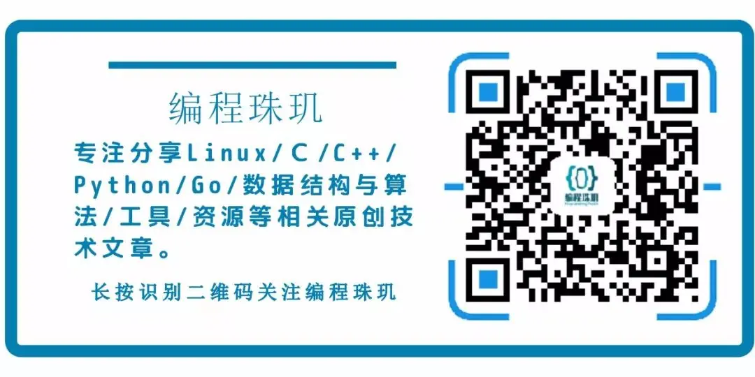 关注公众号【编程珠玑】,获取更多Linux/C/C++/Python/Go/算法/工具等原创技术文章。后台免费获取经典电子书和视频资源