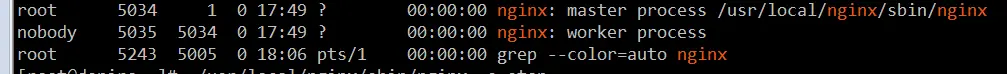 可以看到,该命令执行后,nginx 的相关进程就消失了。