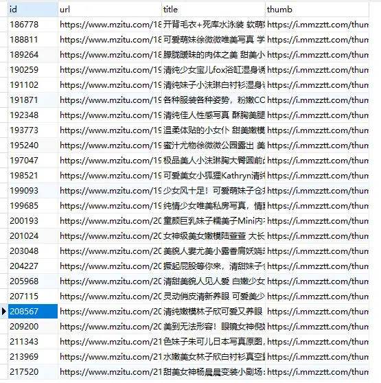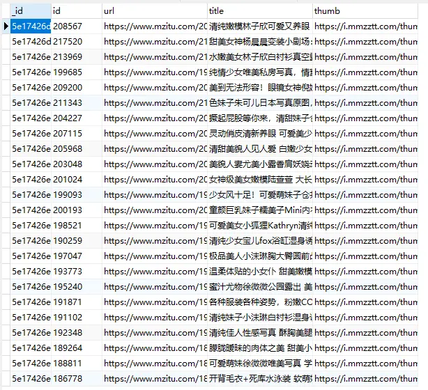 目标是将妹子图首页的数据通过 Item Pipeline 存入 MongoDB 和 Mysql 中。