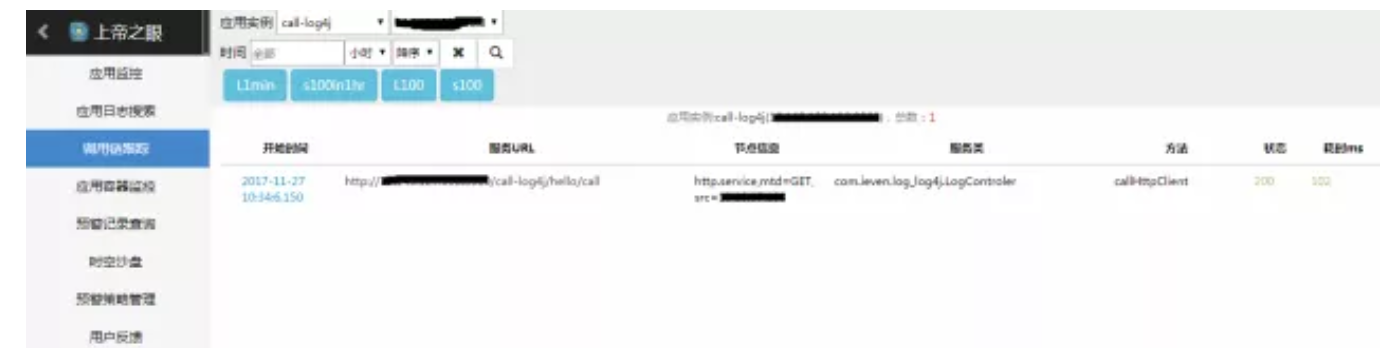 通过特定条件搜素出关心的具体一次调用过程,点击进入调用的详细过程界面。