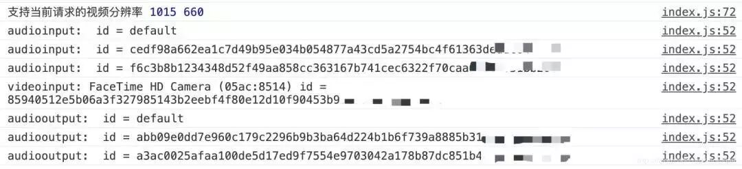 使用enumerateDevices输出一个带有标签(有标签的情况下)的 device ID的列表: