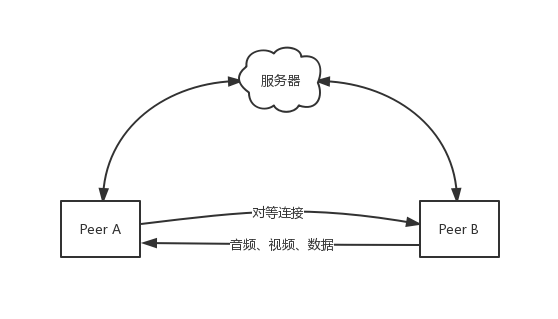 全名(Web Real-Time Communications),为浏览器量身打造用以实时音视频通讯的技术,它允许网络应用或者站点,在不借助中间媒介的情况下,建立浏览器之间点对点(Peer-to-Peer)的连接,实现视频流、音频流或其他任意数据的传输。