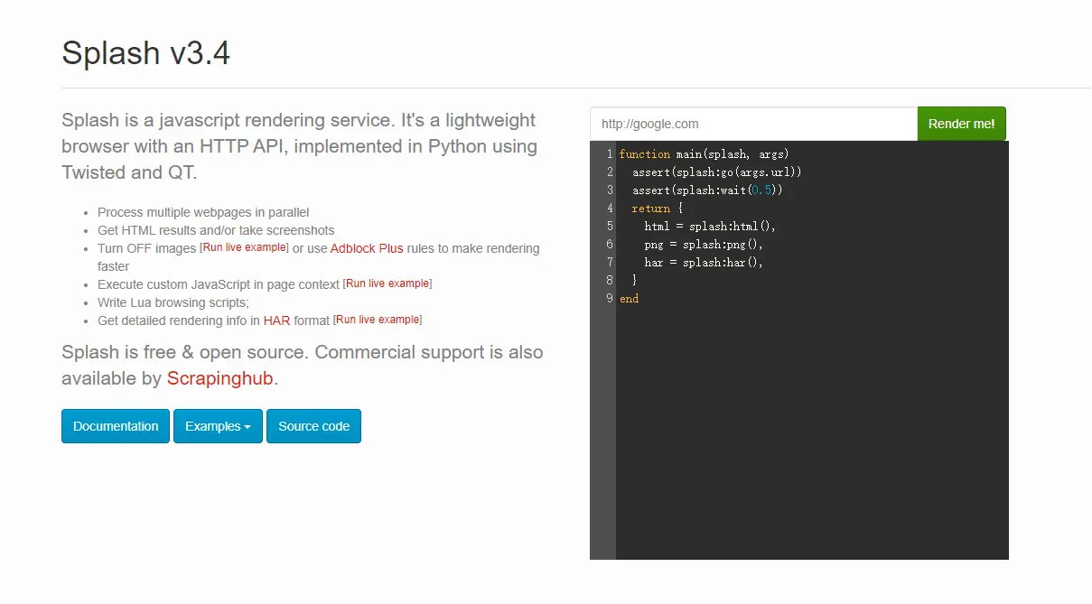 - splash:png, splash:jpeg - 拍摄PNG或JPEG屏幕截图;