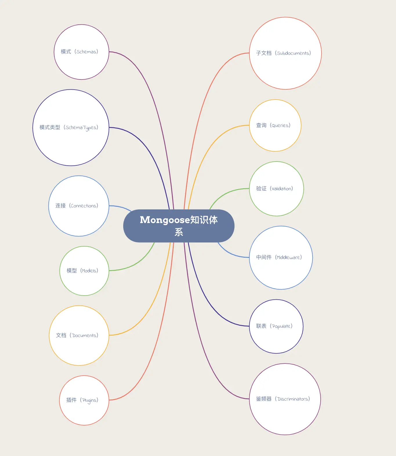 mongoose 涉及到的概念和模块还是很多的,大体有下面这些: