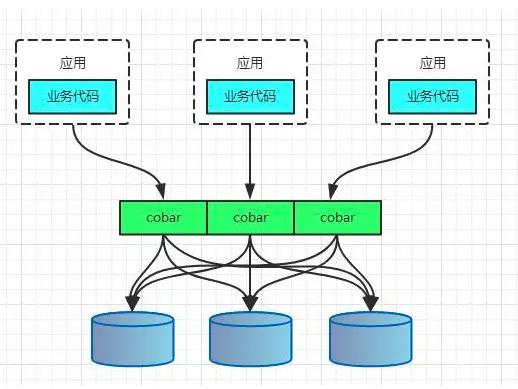 PROXY模式代表有阿里的cobar,民间组织的MyCAT。架构如下: