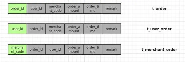 以阿里订单系统为例(参考《企业IT架构转型之道:阿里巴巴中台战略思想与架构实现》),它选择了三个column作为三个独立的sharding column,即:order_id,user_id,merchant_code。user_id和merchant_code就是买家ID和卖家ID,因为阿里的订单系统中买家和卖家的查询流量都比较大,并且查询对实时性要求都很高。而根据order_id进行分库分表,应该是根据order_id的查询也比较多。