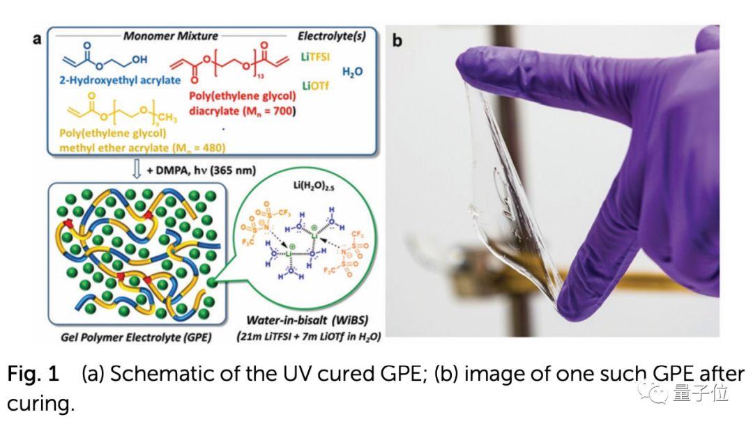 当然,电池里的物质不是吸水珠,而是由聚丙烯酸酯为前体,用紫外光照射使之聚合,生成的MPEGA和PEGDA交联体。