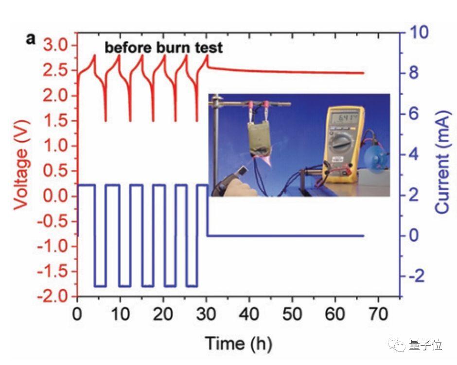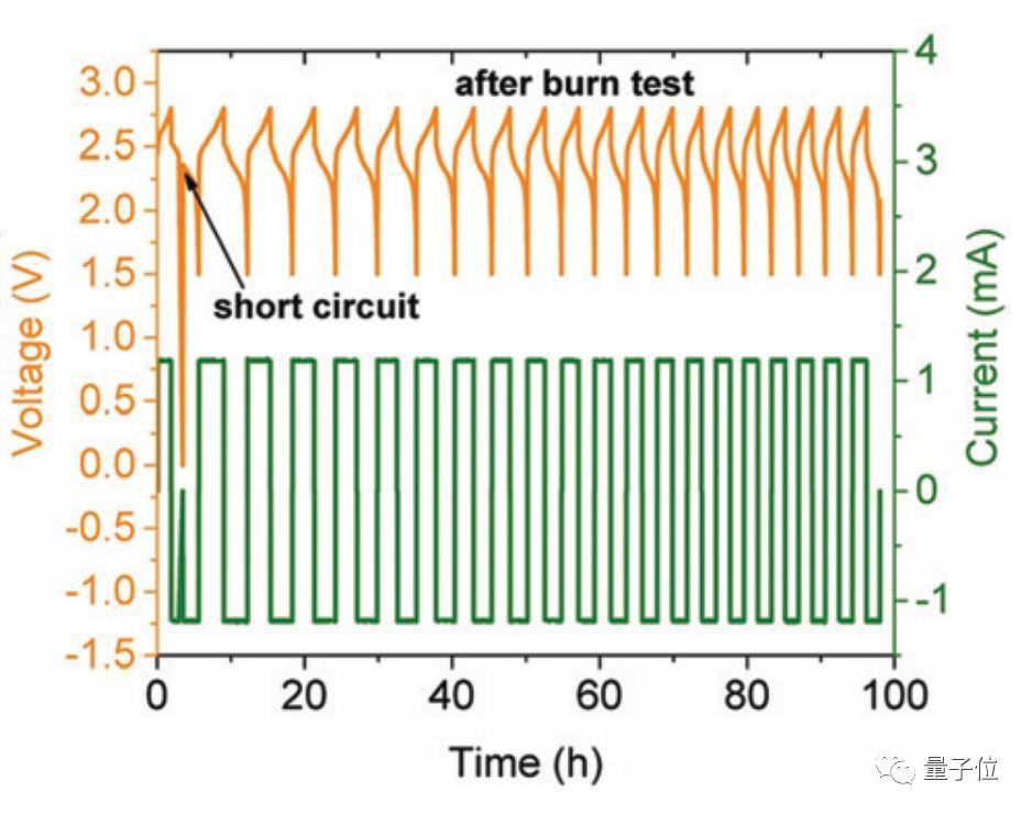 但这种新电池,短路之后,你把它短路的地方断开,它不仅不会发生危险,甚至还能继续充放电循环将近100小时。