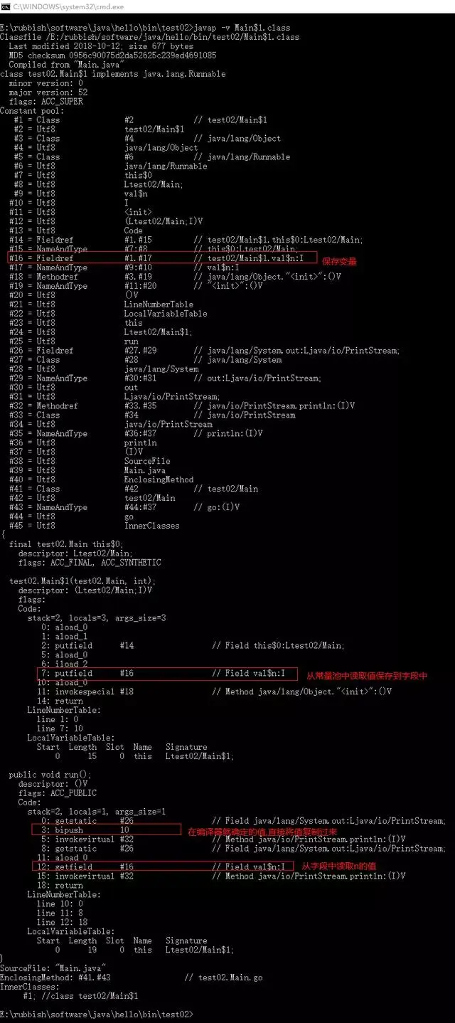 可以看到,java将编译时已经确定的值直接复制,进行替换,将无法确定的值放到了内部类的常量池中,并在构造函数中将其从常量池取出到字段中。