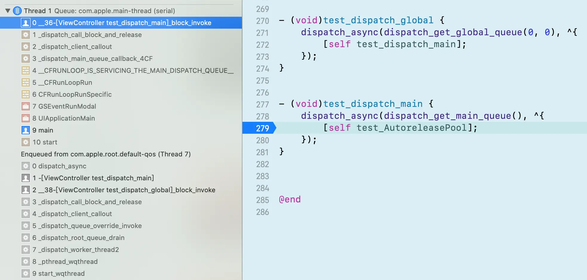 dispatch_async(dispatch_get_main_queue(), block) 。当我们使用 GCD 让主线程执行 block 时,libDispatch 会向主线程的 Runloop 发送消息。Runloop 被唤醒,从消息中拿到 block,然后在 __CFRUNLOOP_IS_SERVICING_THE_MAIN_DISPATCH_QUEUE__() 中执行这个 block。