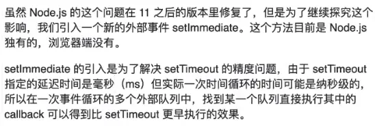 不过你应该注意到,我上面只说了在 nodejs的v11.x 之前输出1324,但是nodejs这个特性在社区经历了一波开发者的吐槽之后,node官方在 v11 这个版本紧急修复了这个问题。所以在v11.x 以上版本执行以上代码会得到在浏览器中一样的结果。