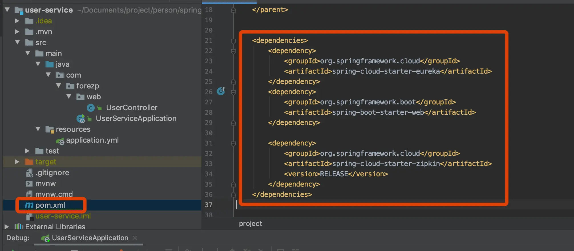 4⃣️ user-service为一个应用服务,对外暴露API接口,同时它也作为链路追踪客户端,负责产生数据