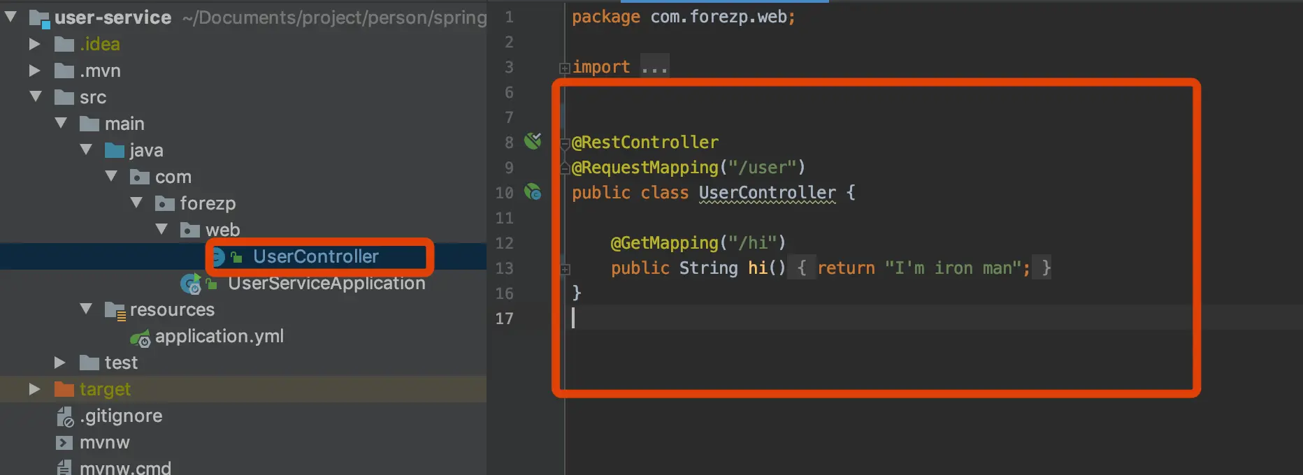 浏览器访问 http://localhost:5000/user-api/user/hi