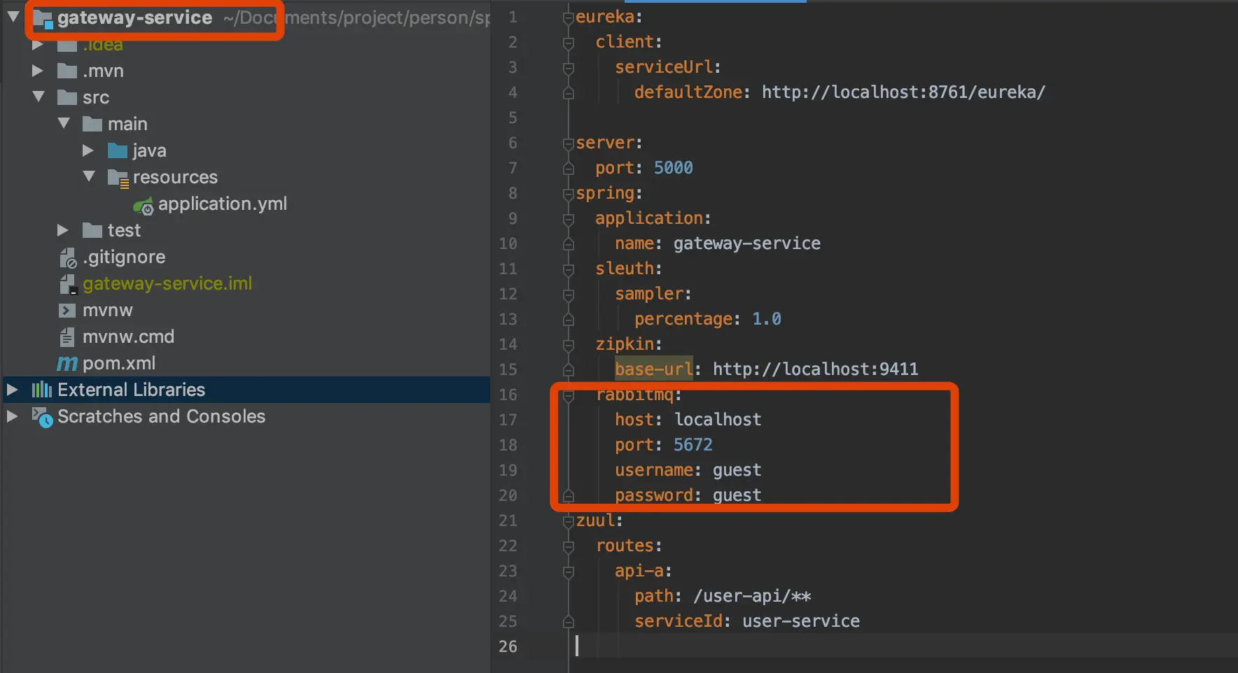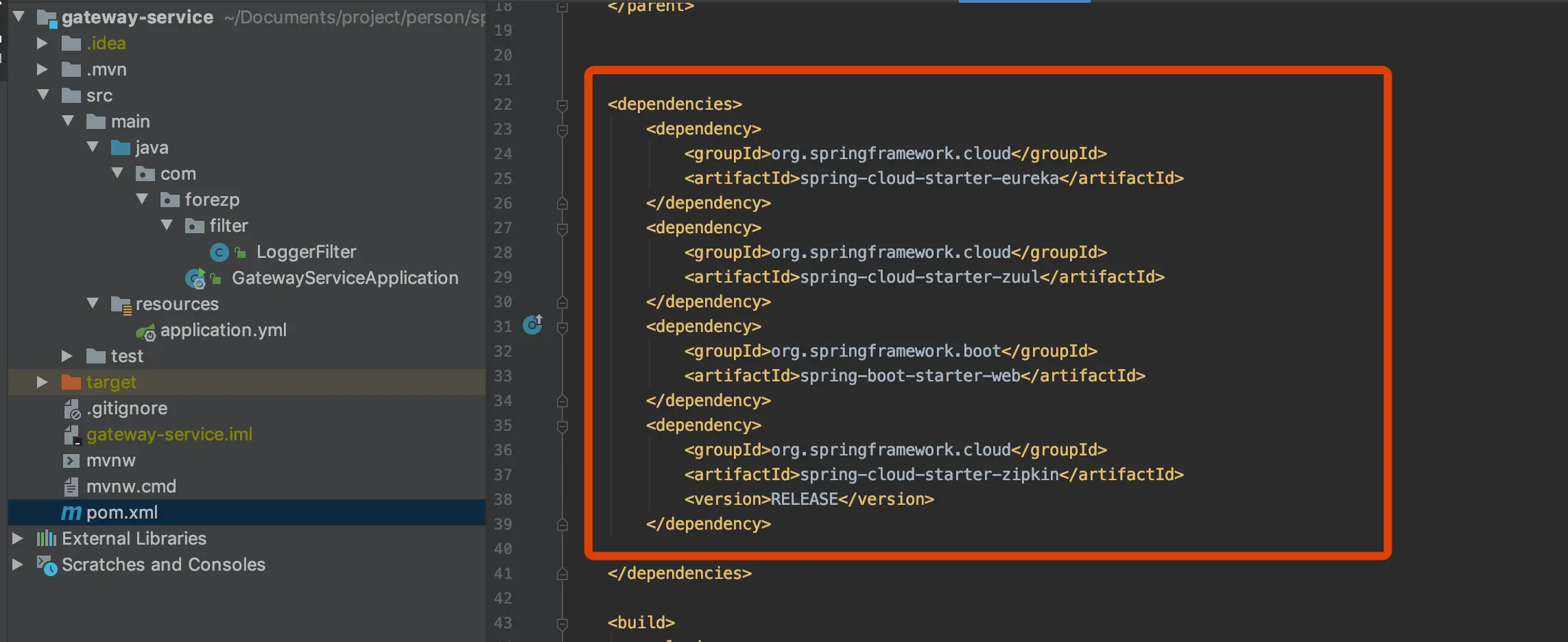 3⃣️ gateway-service作为服务网关工程,负责请求的转发,同时它也作为链路追踪客户端,负责产生数据,并上传给zipkin-service