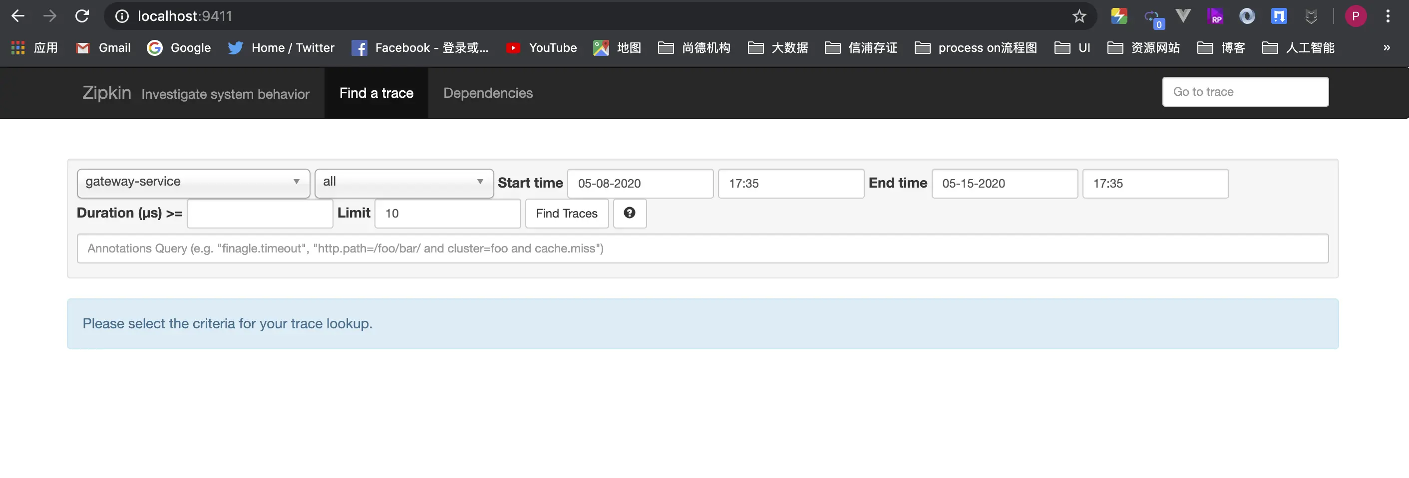 依次启动eureka-server、zipkin-server、user-service、gateway-service