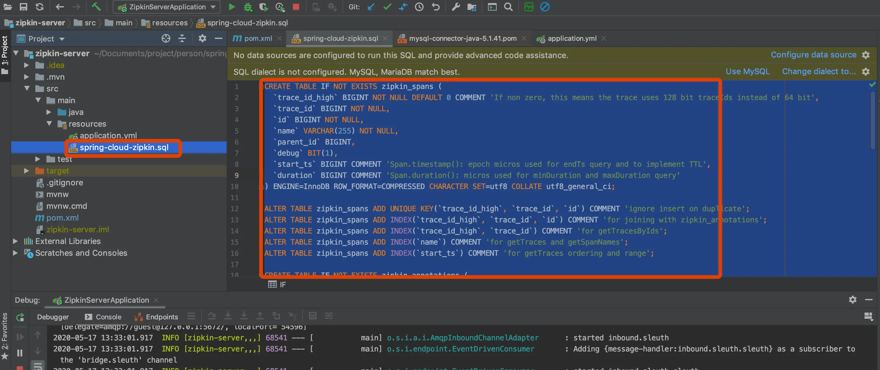 在上述的例子中,Zipkin Server是将数据存储在内存中,一旦程序重启,之前的链路数据全部丢失,那么怎么将链路数据存储起来呢?Zipkin支持Mysql、Elasticsearch、Cassandra存储